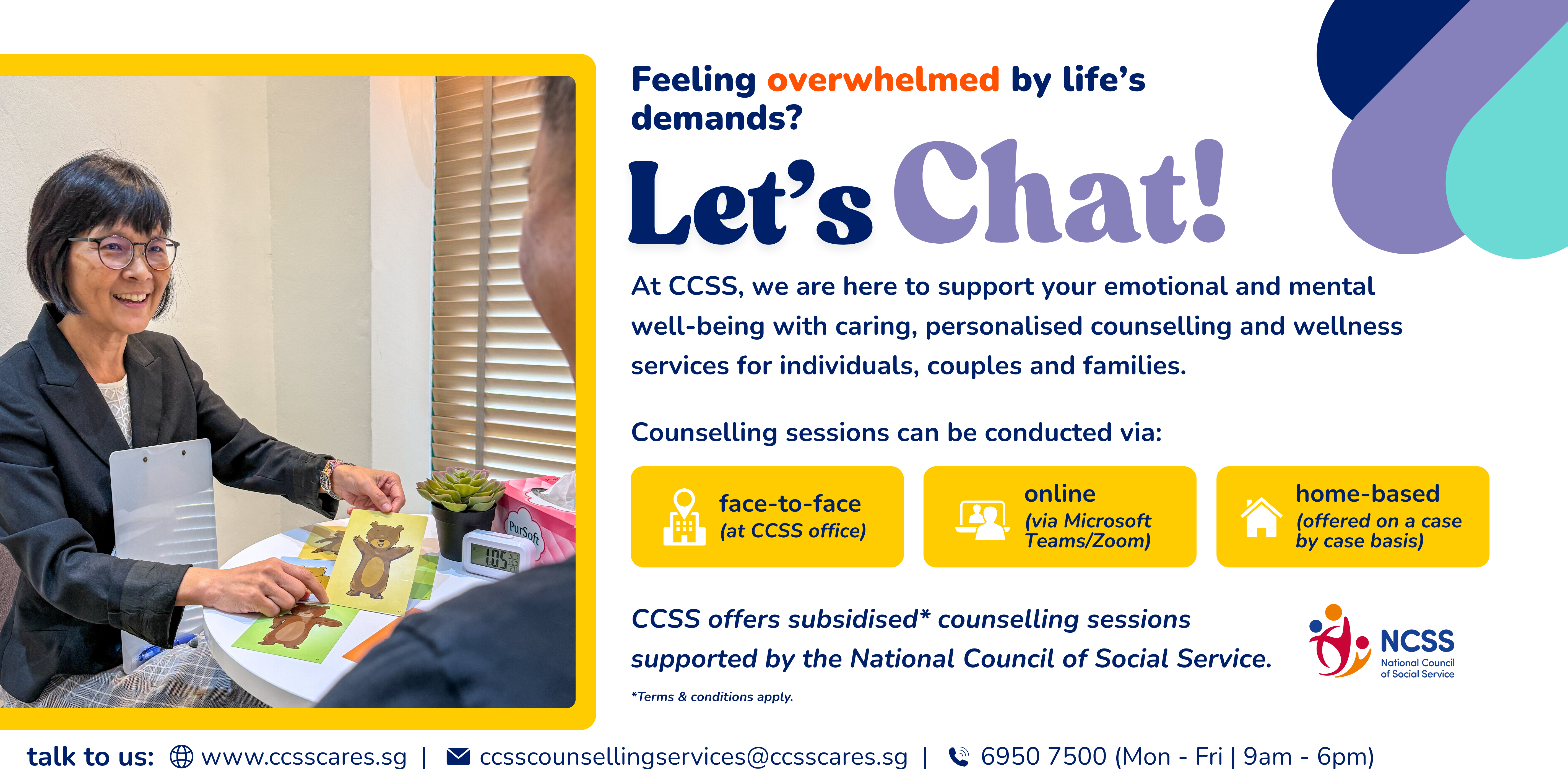 For more information on our packages, please contact us at ccsscounsellingservices@ccsscares.sg